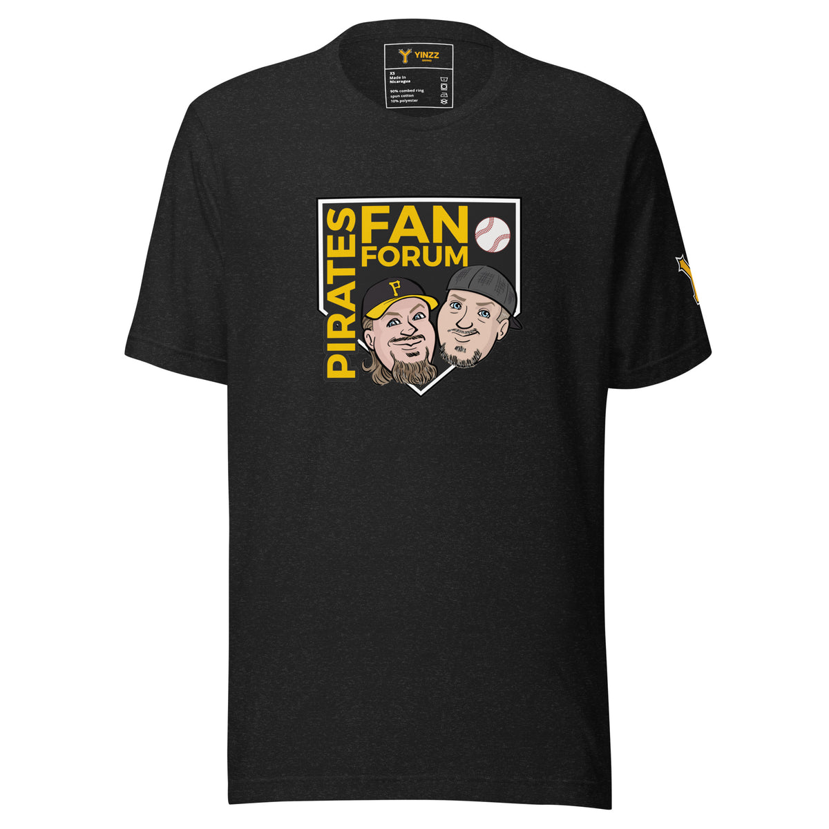 πŸ΄β€β˜ οΈ Show your appreciation for the Pirates Fan Forum Podcast with this exclusive T-shirt collaboration from YINZZ. This tee features the podcast's iconic cartoon logo of Gary and Jim on the front, capturing the essence of their informative and level-headed baseball analysis.